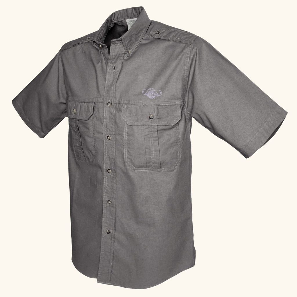 Denne klassiske safari-skjorte med korte ærmer er en uundværlig del af udstyret for den seriøse safari- og jagtentusiast. Fremstillet til at modstå Afrikas varme klima og udfordrende terræn, er denne skjorte din pålidelige partner på alle dine ekspeditioner.